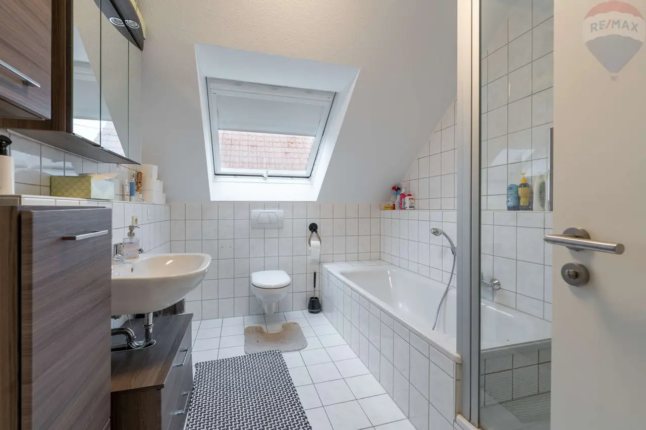 Badezimmer mit Badewanne, Dusche & Fenster