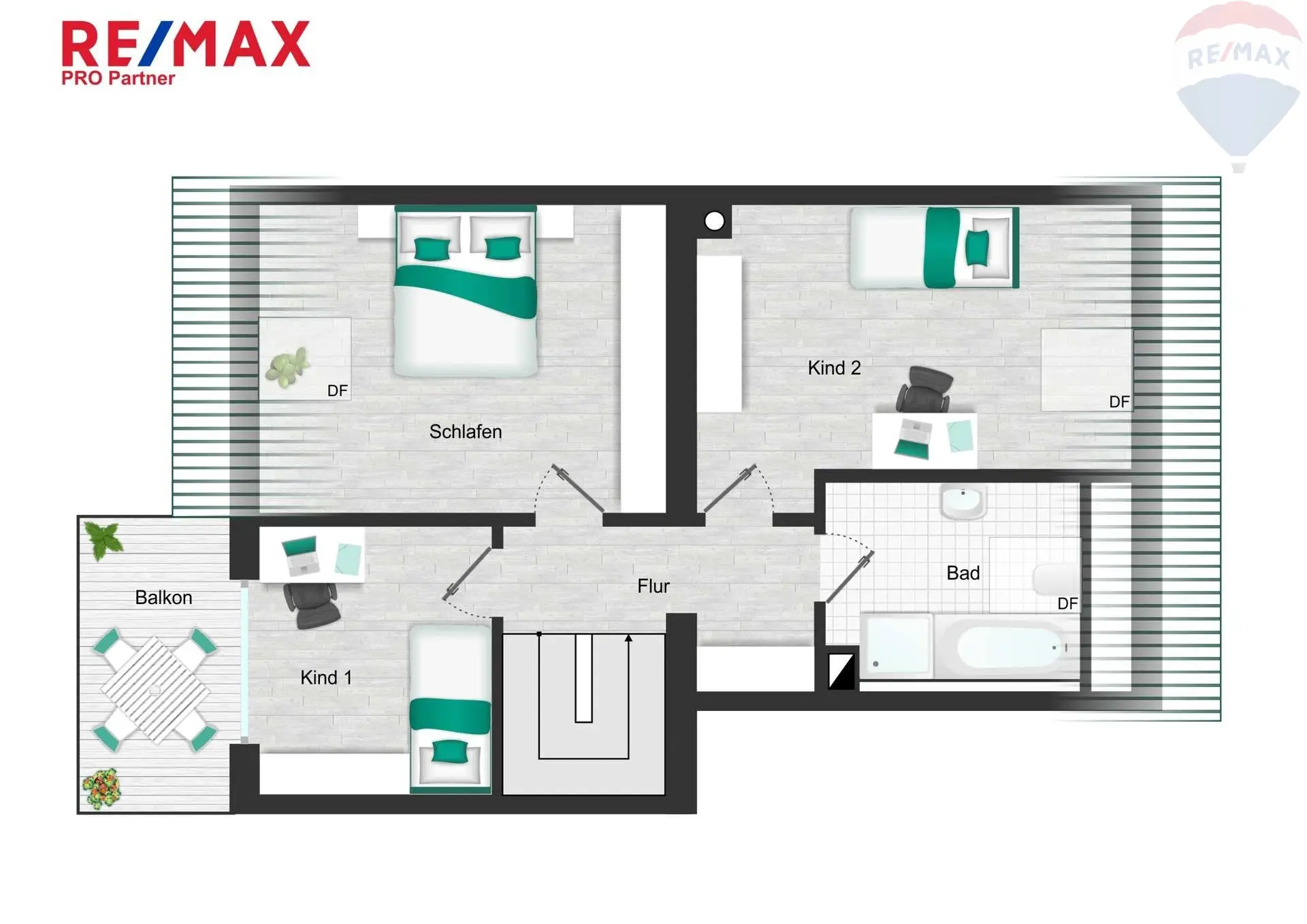 Zwei Balkone (OG & DG)