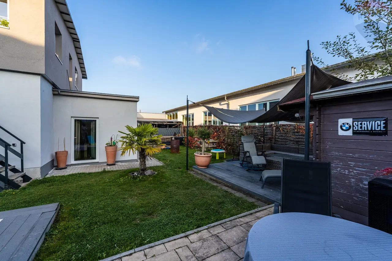 - Südlich ausgerichteter Garten, komplett vom Gewerbebereich getrennt – Privatsphäre garantiert