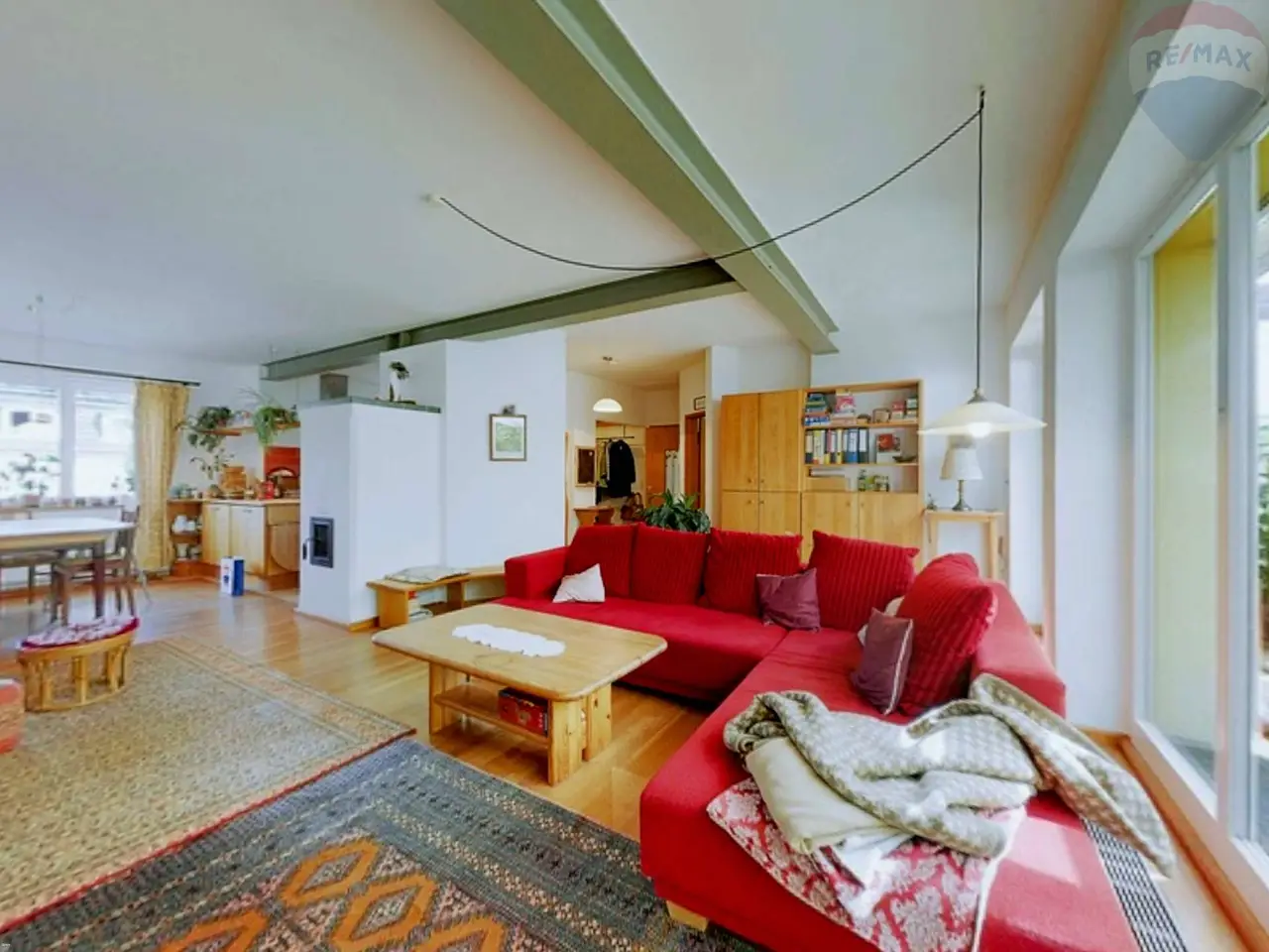 Die Gas-Heizung in Kombination mit dem gemauerten Grundofen, sorgen für eine effiziente und kostengünstige Wärmeversorgung. Auf den Grundofen wird einmal täglich Holz aufgelegt und das komplette Erdgeschoss wird beheizt.