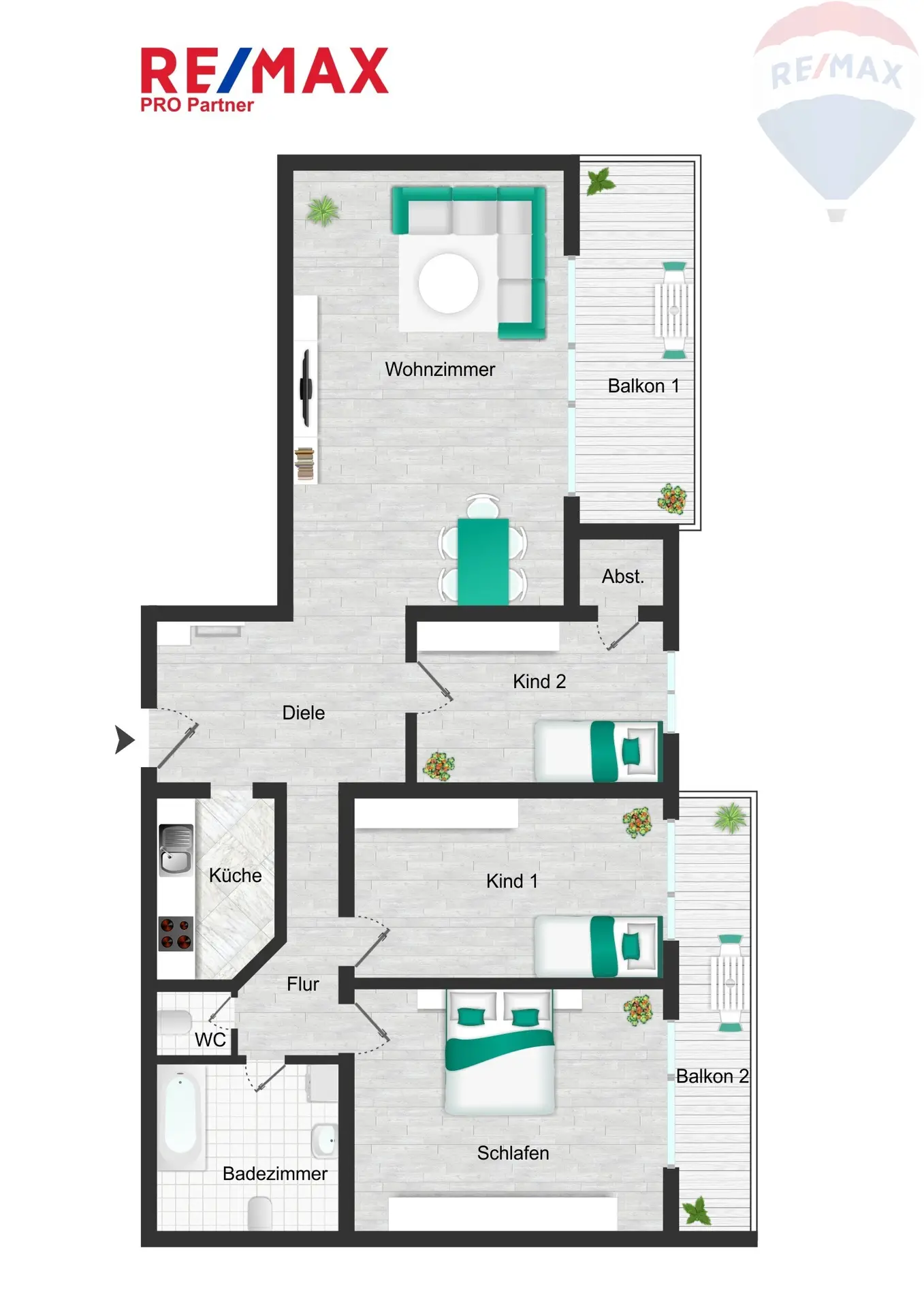 4 Zimmer – darunter 3 helle und gut geschnittene Schlafzimmer